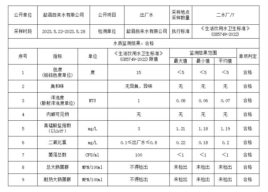 2023.5.22-2023.5.28出廠水質(zhì)信息公告