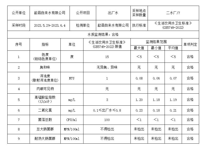 2023.5.29-2023.6.4出廠水質(zhì)信息公告
