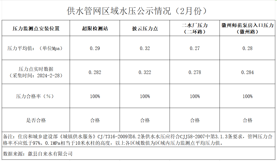 供水管網(wǎng)區(qū)域水壓公示情況(2月份)