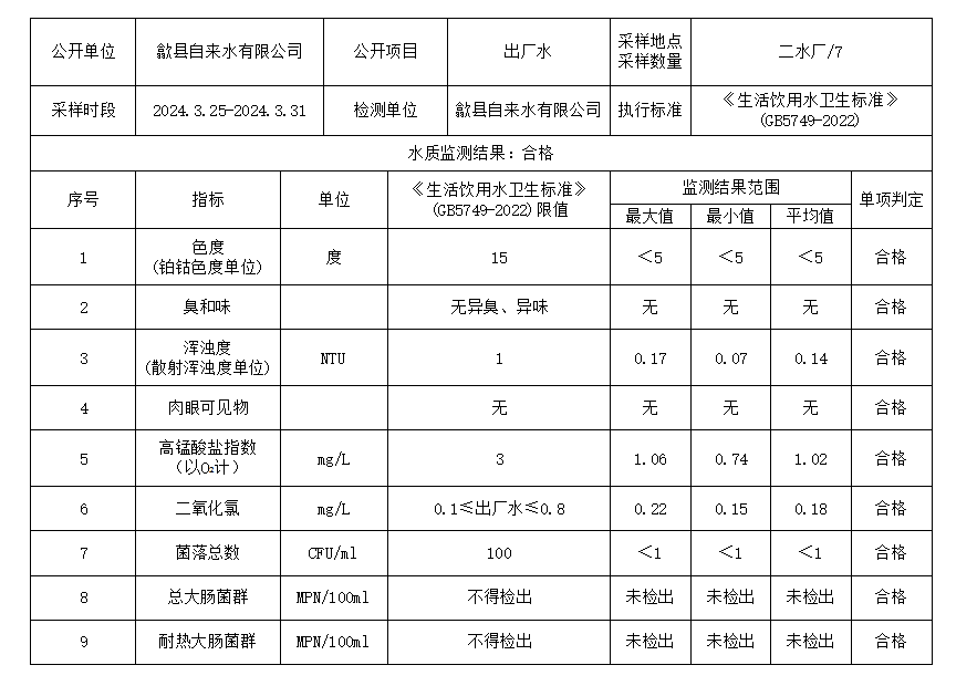2024.3.25-2024.3.31出廠水質(zhì)信息公告