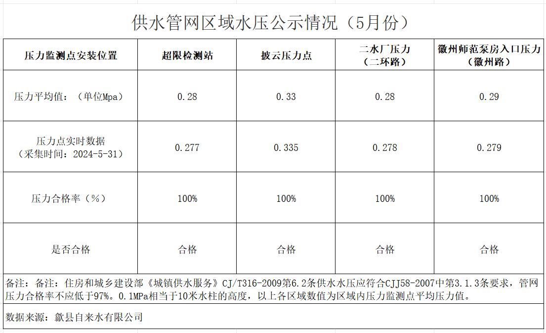供水管網(wǎng)區(qū)域水壓公示情況(5月份)