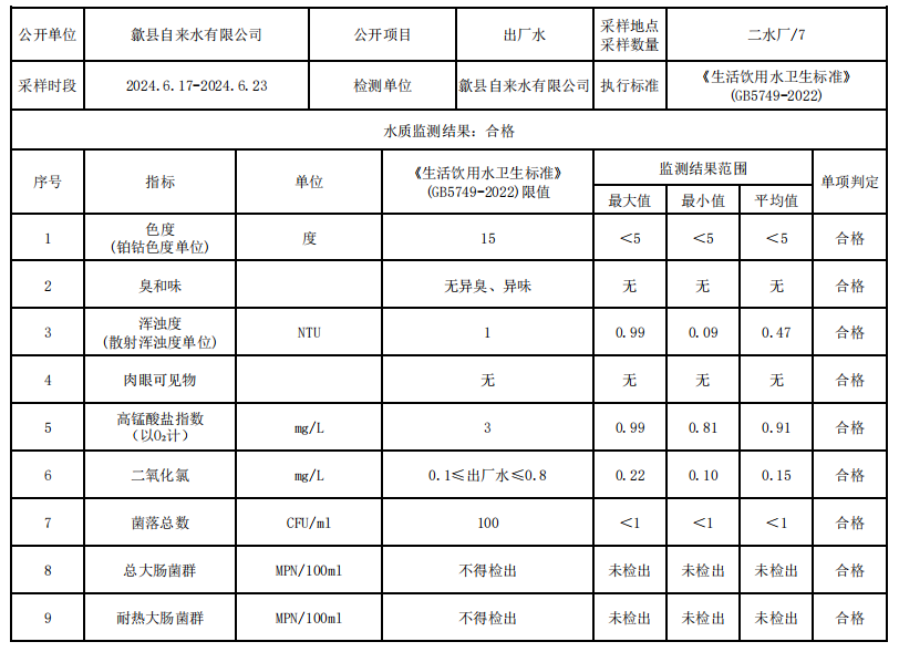 2024.6.17-2024.6.23出廠水質(zhì)信息公告
