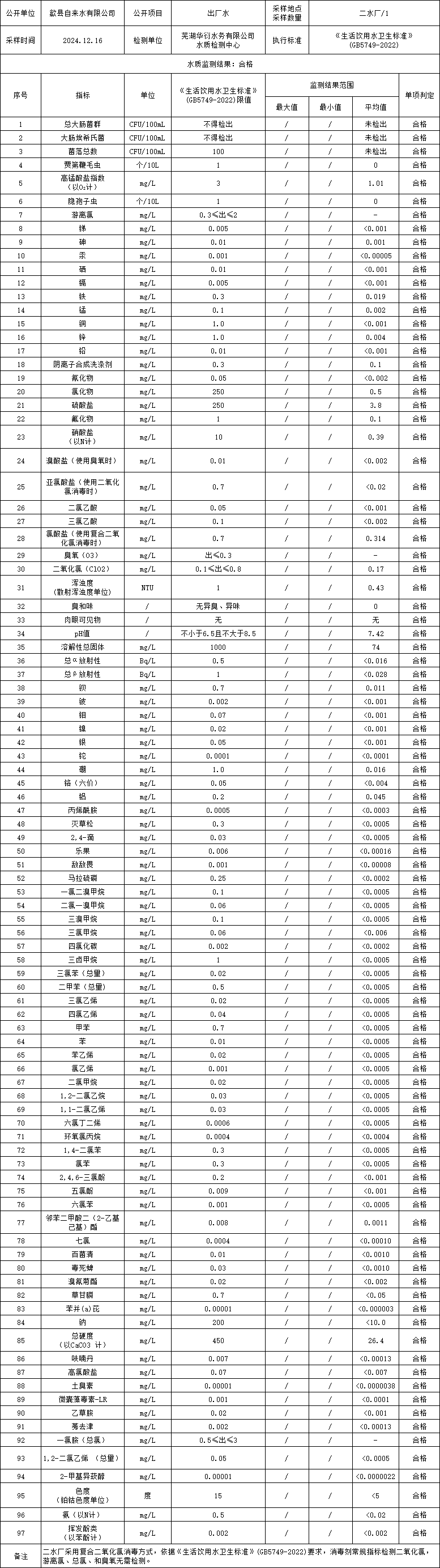 2024年下半年出廠水水質(zhì)公告(97 項(xiàng))