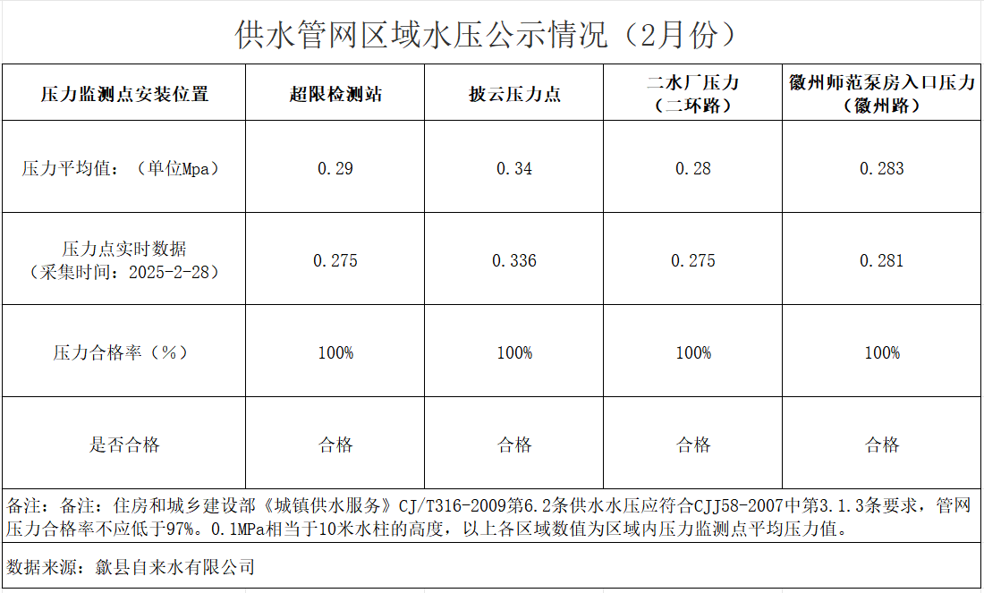 供水管網(wǎng)區(qū)域水壓公示情況(2025年2月份)