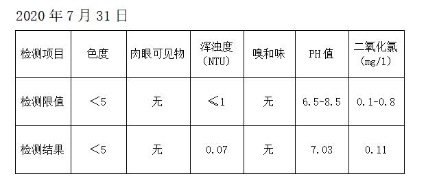 歙縣自來水有限公司2020年7月水質(zhì)報表