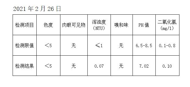 歙縣自來水有限公司2021年2月水質(zhì)報表