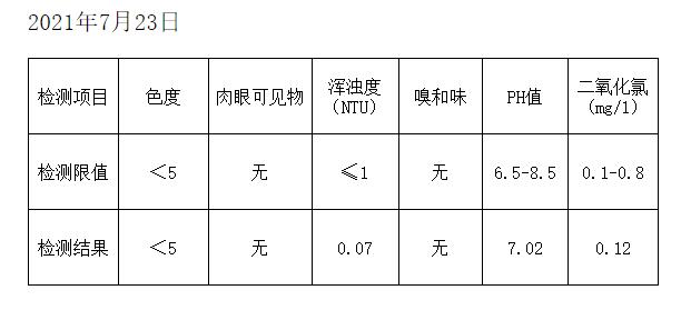 歙縣自來水有限公司2021年7月水質(zhì)報表