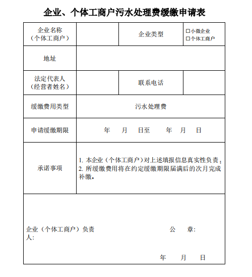 附件:企業(yè)、個(gè)體工商戶(hù)污水處理費(fèi)緩繳申請(qǐng)表
